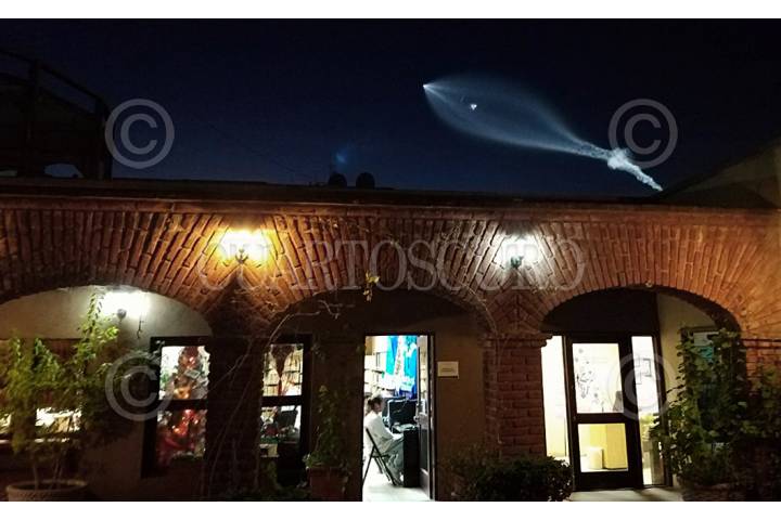 TIJUANA BAJA CALIFORNIA, 22ENERO2017.- El lanzamiento del cohete Falcon 9, de la empresa SpaceX, en la base aérea estadounidense de Vandenberg, se pudo apreciar a simple vista en la ciudad fronteriza. La imagen muestra en primer plano el edificio del Instituto de Cultura de Tijuana. FOTO: CORTESIA LINO ECHEVERRIA /CUARTOSCURO.COM