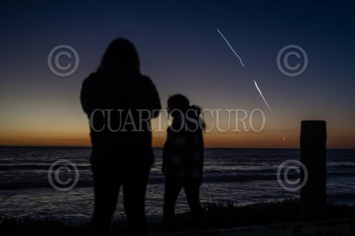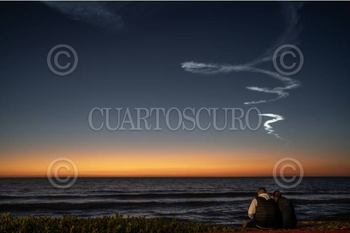 TIJUANA BAJA CALIFORNIA, 01ABRIL2024.- Después de posponerse por cuestiones climáticas, el cohete Falcón 9 de Space X de Elon Musk, fue lanzado al espacio la tarde de este lunes 1 de abril en punto de las 19:30 horas. Algunas personas se dieron cita en Playas de Tijuana, para observar el espectáculo aéreo que pudo apreciarse en diferentes partes del norte del país. Este cohete fue lanzado desde el complejo de lanzamiento Espacial en la base de la Fuerza Espacial Vandenberg, en California. . FOTO: OMAR MARTÍNEZ/CUARTOSCURO.COM