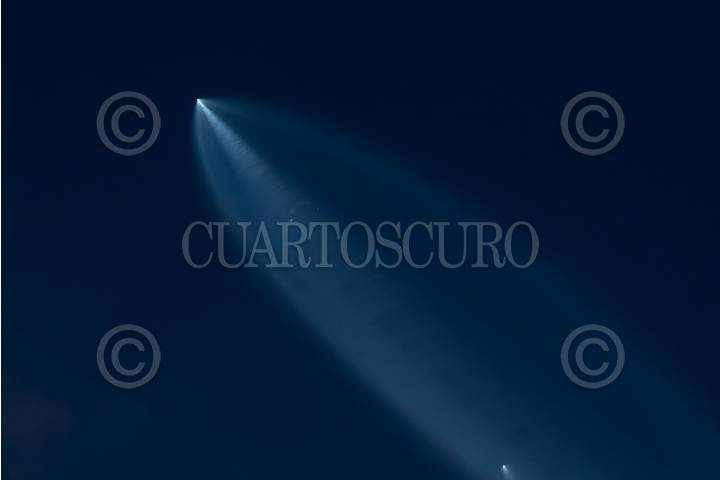 TIJUANA, BAJA CALIFORNIA, 07OCTUBRE2018.- Esta tarde fue lanzado hacia el espacio en punto de las 19:21 horas el cohete Falcon 9 de la empresa SpaceX desde la base aérea de Vandenberg en California, Estados Unidos. El cohete pudo observarse desde San Diego, California, y de algunas ciudades del norte de México. FOTO: OMAR MARTÍNEZ /CUARTOSCURO.COM