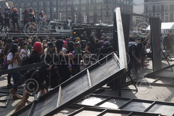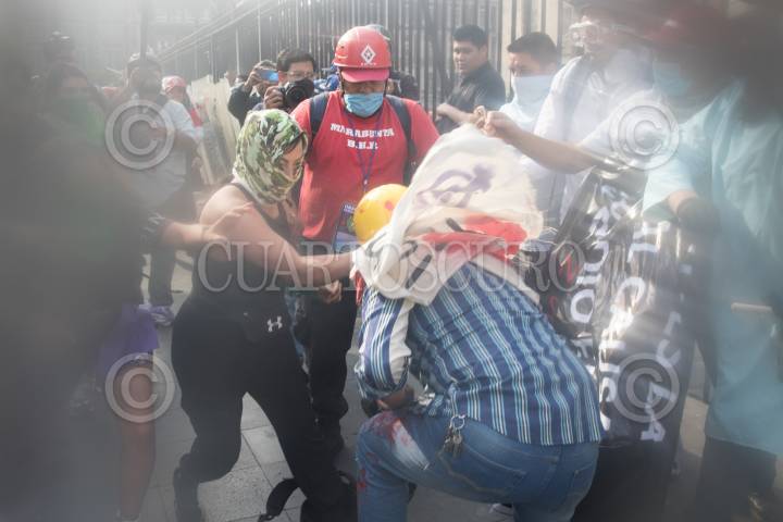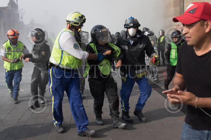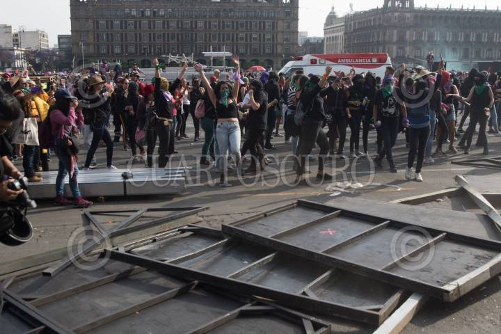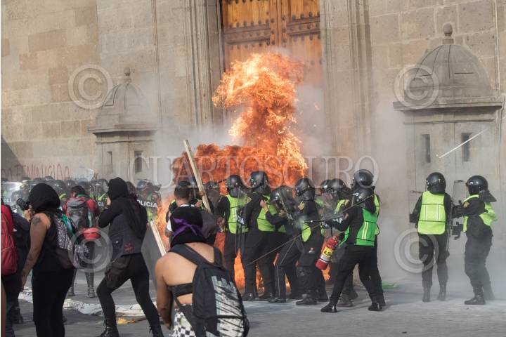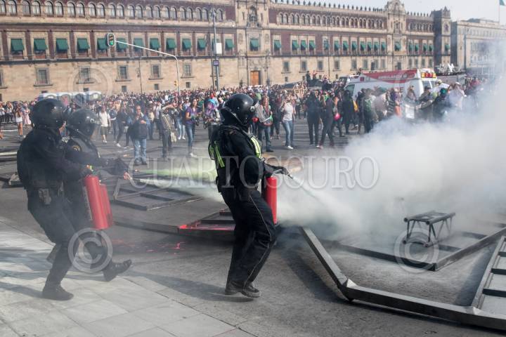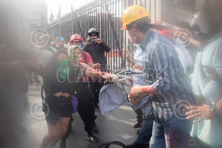Un grupo de mujeres encapuchadas se enfrentaron con hombres que se manifestaban en la Catedral Metropolitana, durante la marcha conmemorativa del Día Internacional de la Mujer