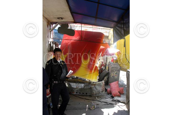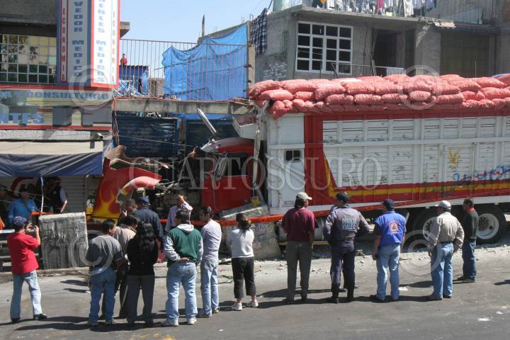 MEXICO D.F. 02MARZO2006.- Un camión cargado con varias toneladas de piedras se quedó sin frenos y se impactó contra ocho vehículos que estaban estacionados en eje 6 y la calle México en la colonia Santa Marias, Aztahuacan. FOTO: Pedro Marrufo/CUARTOSCURO.COM