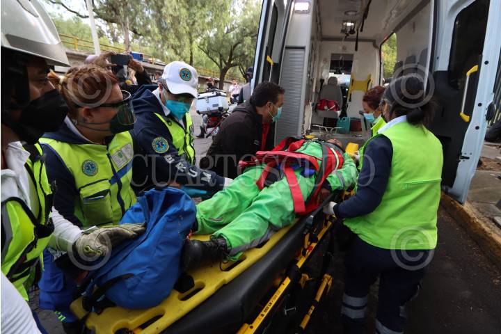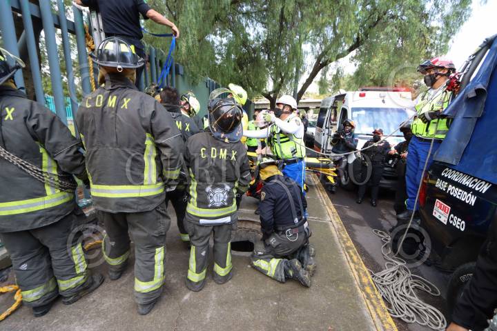 Paramédicos atendieron a una mujer cayó a una coladera que faltaba la tapa en la banqueta de la Calle 608 y 508 en la colonia San Juan de Aragón