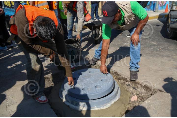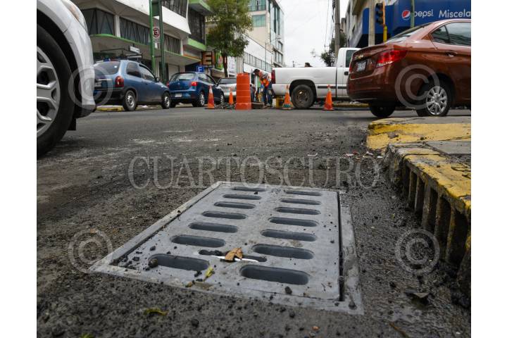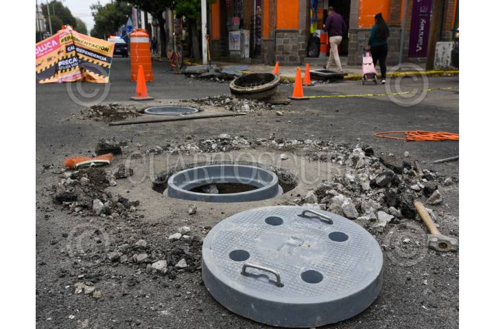 Durante la sobras de repavimentación de varias calles de la zona centro de Toluca se ha realizado el cambio de coladeras también.
