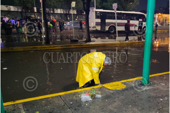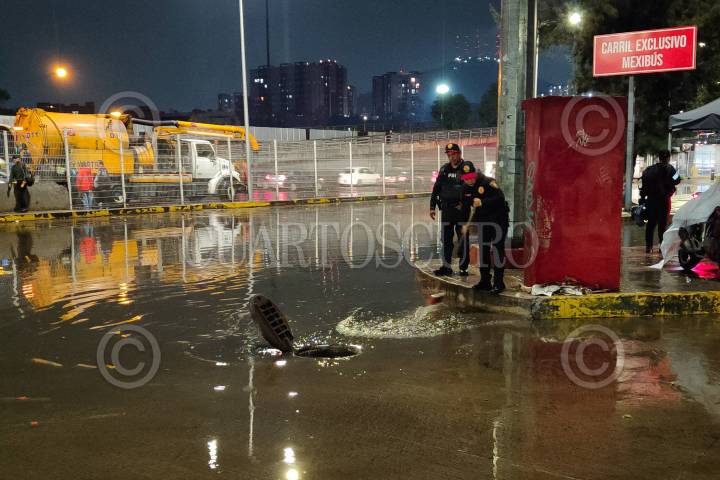 CIUDAD DE MÉXICO, 30JULIO2024.- Trabajadores de Sacmex desazolvan una coladera para que fluya el agua del Cetram Indios Verdes. FOTO: DANIEL AUGUSTO/ CUARTOSCURO.COM