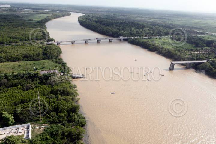 HUIMANGUILLO, TABASCO, 17JULIO2009.- Vista aérea panorámica en donde colapsa el puente del río Tonala. FOTO: MARCO POLO GUZMÁN HERNÁNDEZ/CUARTOSCURO.COM