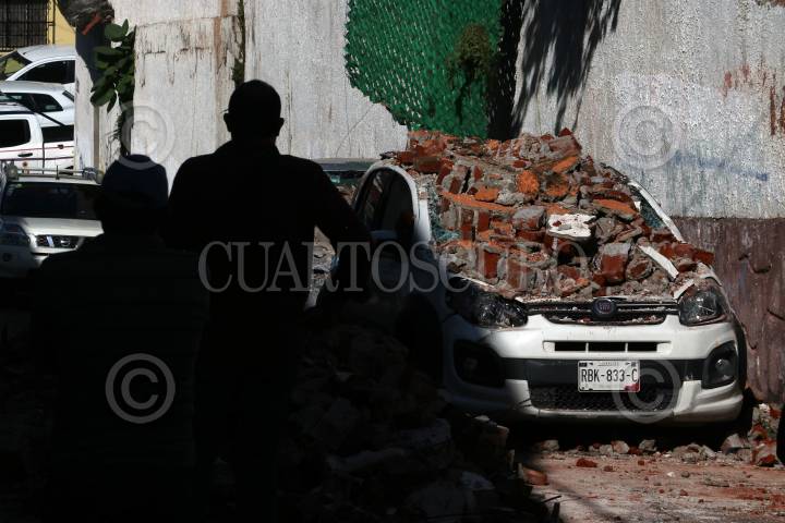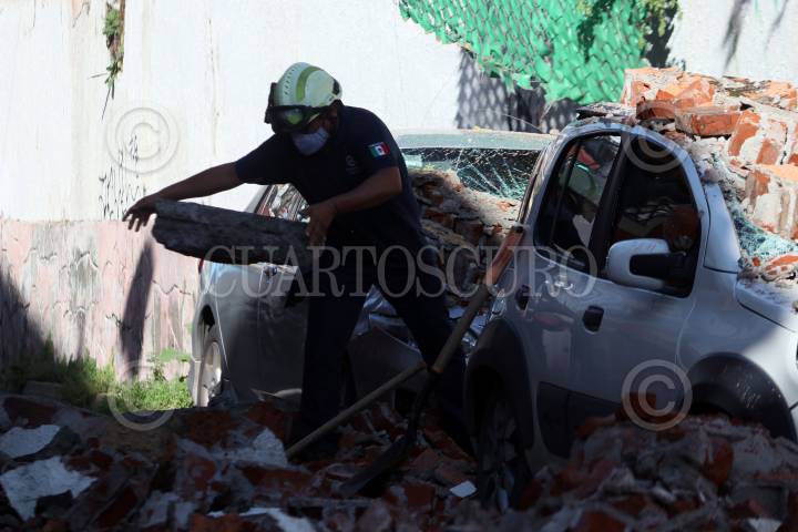Cae barda en el centro de la ciudad, afecta a tres autos que estaban estacionados a su lado.