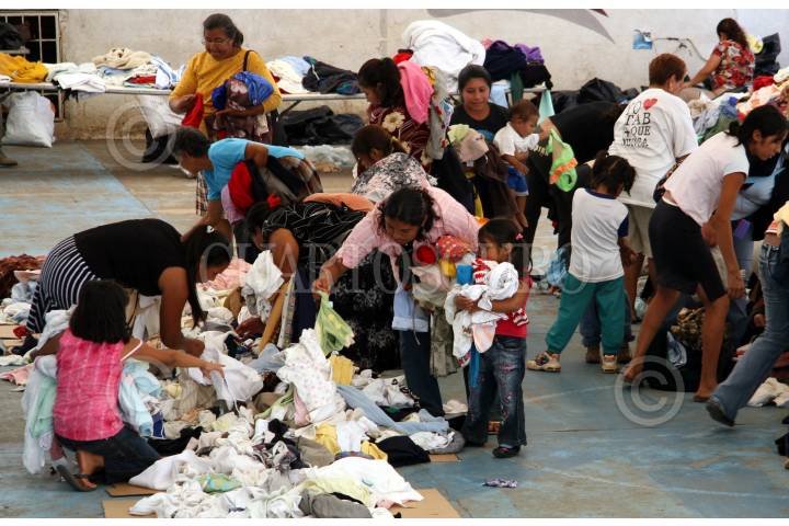 VILLAHERMOSA, TABASCO, 20DICIEMBRE2007.- Cientos de pobladores tabasqueños que son damnificados acuden a los diferentes centros de acopio en donde realizan largas colas para esperar su turno y así poder escoger mudas de ropa que fueron donadas voluntariamente. FOTO: MARCO POLO GUZMÁN HERNÁNDEZ/CUARTOSCURO.COM