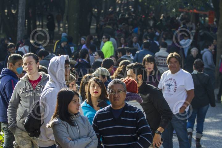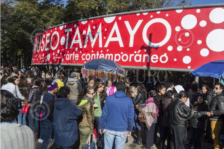 MÉXICO, D.F., 11ENERO2015.- Cientos de personas hacen fila desde antes de que abra el Museo Tamayo Arte Contemoraneo, con la finalidad de alcanzar una entrada para ingresar a ver la exposición "Yayoi Kusama. Obsesión Infinita". Alrededor de 2 mil 100 personas acuden diaramente al museo y más de 204 mil han observado la retrospectiva de la artista japonesa. FOTO: ISAAC ESQUIVEL /CUARTOSCURO.COM