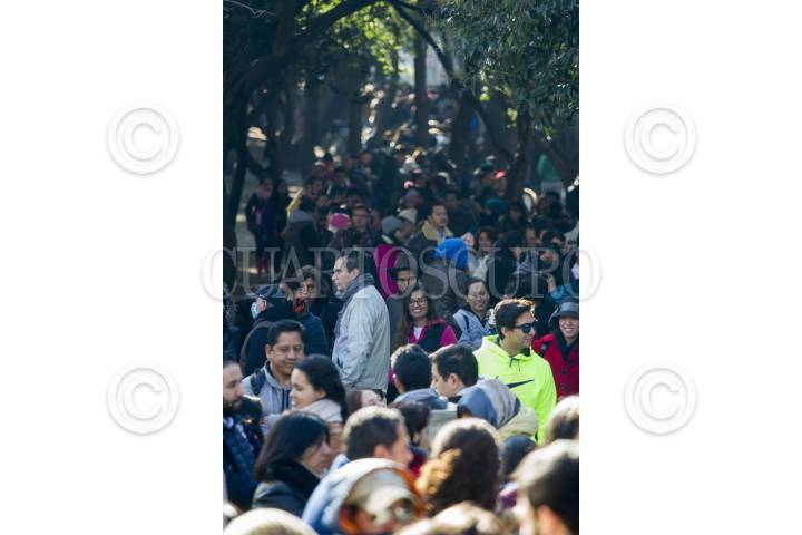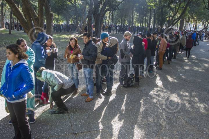 MÉXICO, D.F., 24FEBRERO2013.-Cientos de personas hacen fila en las calles de Tacuba y Eje Central, en el centro Histórico de la Ciudad, para accesar a la XXXIV Feria Internacional del Libro del Palacio de Mineria. FOTO: JUAN PABLO ZAMORA /CUARTOSCURO.COM