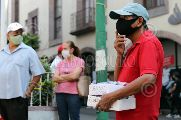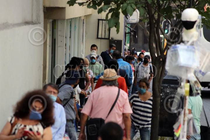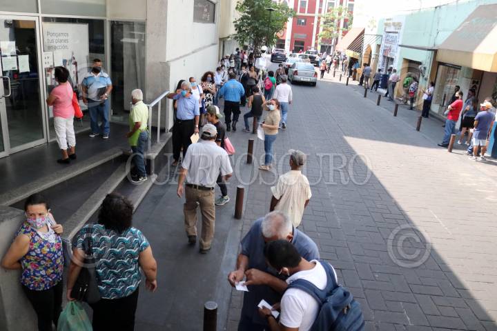Largas colas para hacer trámites en bancos del centro de la ciudad.