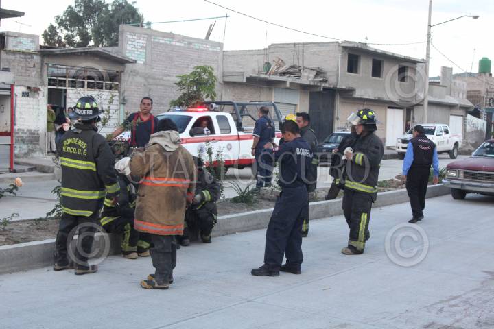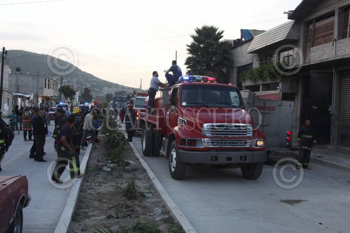 LOS REYES LA PAZ, ESTADO DE MÉXICO, 29JULIO2014.- Intensa movilización de servicios de emergencia ocasiono el incendio de un taller de colchones ubicado en la calle Francisco Villa en la colonia San Sebastian. FOTO: SAÚL LÓPEZ /CUARTOSCURO.COM