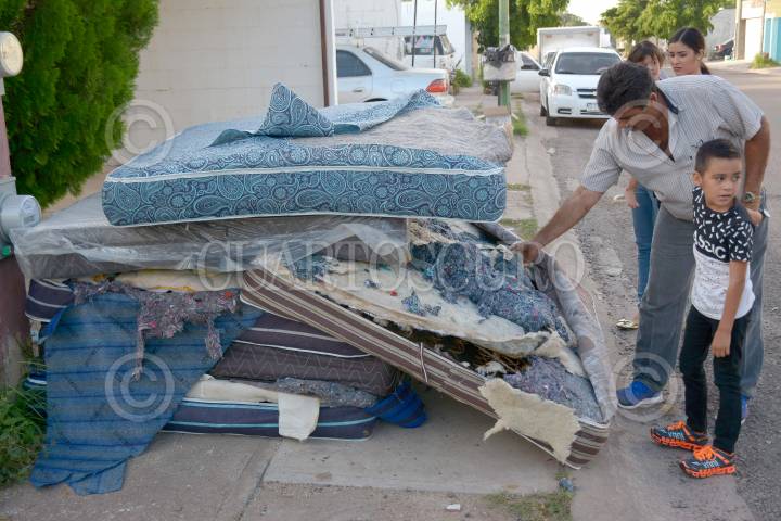 CULIACÁN, SINALOA, 17OCTUBRE2018.- Luego de descubrir que Gobierno del Estado y el Ayuntamiento de Culiacán les habían entregado colchones viejos y apestosos, vecinos de las colonias Jardines del Pedregal, 6 de Enero, Ignacio Allende, Valle Alto, cuyas casas resultaron inundadas durante la tormenta del pasado 20 de septiembre, protestaron por lo que consideraron “una burla” de las autoridades. Los colchones apestosos y mojosos, fueron sacados a las calles, y muchos de ellos fueron llevados por vecinos a las puertas del Ayuntamiento. Las protestas iniciaron el lunes cuando se dieran a conocer diversas denuncias y videos en redes sociales donde afectados por las lluvias del fraccionamiento Jardines del Pedregal daban a conocer que el Gobierno del priista Quirino Ordaz Coppel les había entregado colchones viejos disfrazados de nuevos. Los vecinos sacaron los colchones a la calle e iniciaron una protesta que obligó a autoridades del Gobierno a acudir al lugar y comprometerse a llevar colchones nuevos e iniciar una investigación contra el vendedor o donador de los colchones. FOTO: JUAN CARLOS CRUZ /CUARTOSCURO.COM