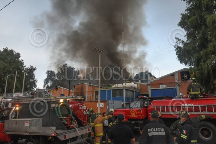 Se suscitó un incendio en una fábrica colchones en la colonia San Pablo Xalpa, Tlalnepantla, bomberos de la capital y del Estado de México sofocaron las llamas.
