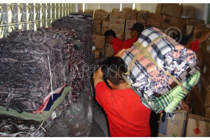 CHILPANCINGO, GUERRERO27NOVIEMBRE2006.- Aspecto de la recoleccion de cobertores, colchonetas, chamarras y bufandas que lleva a cabo la Unidad Estatal de Proteccion Civil, los cuales seran repartidos en proximos dias en varias comunidades de la region de la montaña alta del estado como una forma de ayudar a las personas que habitan en dicha zona en esta temporada invernal. FOTO: OSCAR ALVARADO/CUARTOSCURO.COM