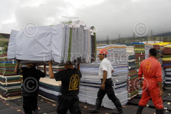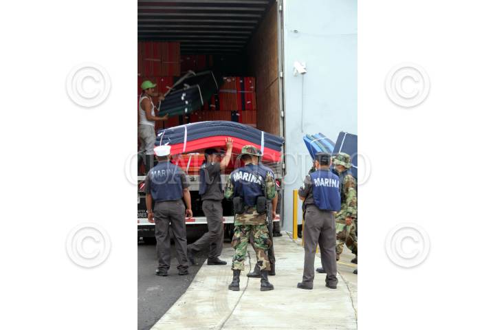 VILLAHERMOSA, TABASCO, 1NOVIEMBRE2007.- Miembros del cuerpo de la Marina descargan un trailer con colchonetas que serán entregadas para los pobladores damnificados por las inundaciones que fueron provocados por el desbordamientos de los ríos. FOTO: MARCO POLO GUZMÁN HERNÁNDEZ/CUARTOSCURO.COM