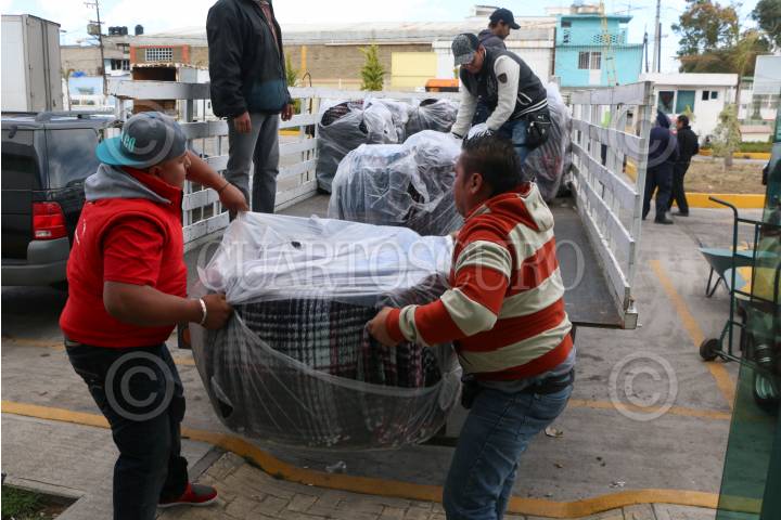 QUERETARO, QUERETARO, 03DICIEMBRE2009.- Este dia donaron mas de 10 mil cobijas, ropa y cobertores, colchonetas, como parte del programa del SEDIF, encabezado por Sandra Albarrán de Calzada; las oficinas y los titulares de la CEA, SEDEA, Secretaría de Turismo, Secretaría de Salud, Secretaría de Educación, COPLADEQ, IQJ, SEDIF, PGJ, Oficialía Mayor, Instituto Queretano de la Cultura, el Tribunal Superior de Justicia del Estado. FOTO: DEMIAN CHAVEZ/CUARTOSCURO.COM