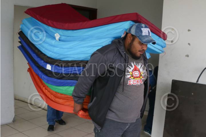 CIUDAD NEZAHUALCOYOTL, ESTADO DE MÉXICO,, 10MARZO2016.- Debido al mal clima el gobierno de Ciudad Nezahualcoyotl habilitó albergues temporales en el municipio, en la imagen trabajadores apoyan a instalan dicho refugio en el Centro Cultural Plurifuncional ubicado en la colonia Ampliación Vicente Villada. FOTO: SAÚL LÓPEZ /CUARTOSCURO.COM