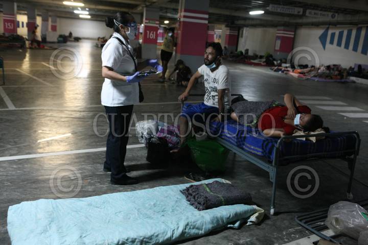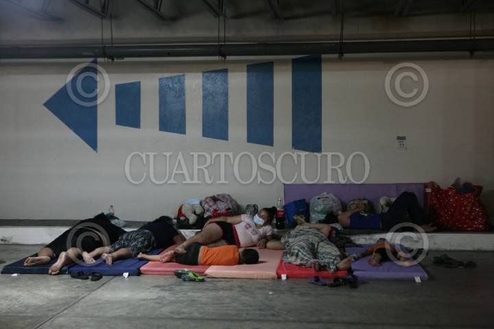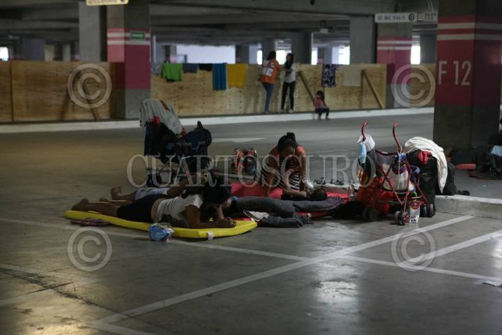 Estacionamiento de plaza comercial se convierte en albergue para personas damnificadas por las inundaciones que causan los desbordes de ríos en el estado.