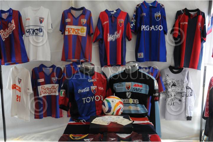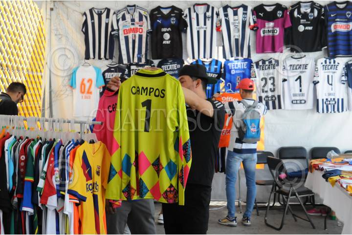 CIUDAD DE MÉXICO, 14JULIO2024.- Un stand ofrecía distintas playeras del equipo Atlante durante distintas épocas. FOTO: DANIEL AUGUSTO /CUARTOSCURO.COM