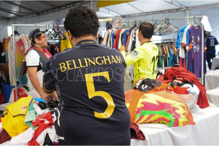 CIUDAD DE MÉXICO, 14JULIO2024.- Jerseys de distintos equipos del mundo se encuentran a la venta en el Encuentro Camisetero MX. FOTO: DANIEL AUGUSTO /CUARTOSCURO.COM