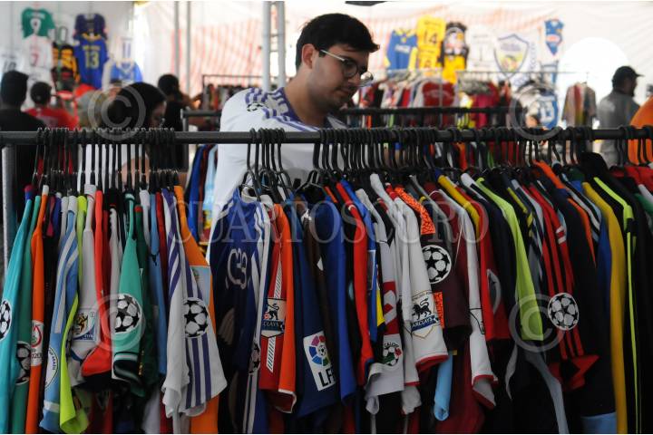 CIUDAD DE MÉXICO, 14JULIO2024.-Jerseys de distintos equipos del mundo están a la venta en EL Encuentro Camisetero MX. FOTO: DANIEL AUGUSTO /CUARTOSCURO.COM