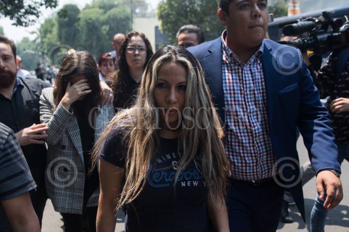 CIUDAD DE MÉXICO, 12MAYO2019.- Mónica García Villegas, directora del Colegio Rébsamen, el cual se vino abajo tras el sismo del 19 de septiembre muriendo 19 niños y 7 adultos, fue presentada ante un juez en el Tribunal Superior de Justicia de la Ciudad de México, para responder por su presunta responsabilidad en las fallas de la construcción de la escuela que pudieron derivar de que se viniera abajo, mejor conocido como "Miss Moni" estuvo profuga de la justicia desde hace ya casi dos años. En la imagen una hermana y su hija salen de la audiencia. FOTO: MOISÉS PABLO /CUARTOSCURO.COM