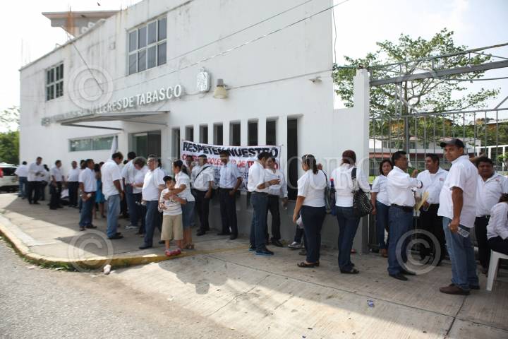 VILLAHERMOSA, TABASCO, 08AGOSTO2013.- Cientos de educadores sindicalizados que imparten clases de distintas asignaturas en los Colegios de Bachilleres, tomaron las instalaciones de la Dirección General del Colegio de Bachilleres de Tabasco; el nuevo semestre iniciará en días próximos. Los manifestantes docentes de los 17 municipios de Villahermosa se mostraron inconformes ante las deficientes estrategias de planificación de horarios para la impartición de clases. Solicitaron además la destitución de Jaime Mier y Terán, Director General del Colegio de Bachilleres de Tabasco, a quien acusan de la debacle educativa. FOTO: MARCO POLO GUZMÁN HERNÁNDEZ /CUARTOSCURO.COM