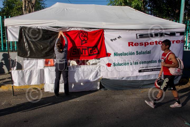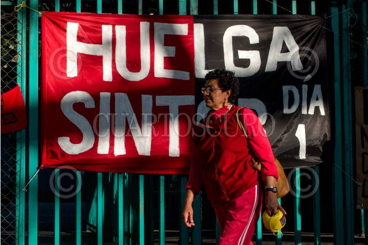 CIUDAD DE MÉXICO, 28NOVIEMBRE2023.- Integrantes del Independiente Nacional de Trabajadores del Colegio de Bachilleres (SINTCB) marcharon del metro Chabacano al Zócalo para exigir se cumplan las demandas tras estallar la huelga en pasado 24 de noviembre. Las y los inconformes exigen un aumento salarial por Revisión Contractual 2023 del 20%, el 8.2?fortalecimiento al salario que el presidente Andrés Manuel dispuso, y la equiparación de los salarios a 16 mil pesos. FOTO: GALO CAÑAS/CUARTOSCURO.COM