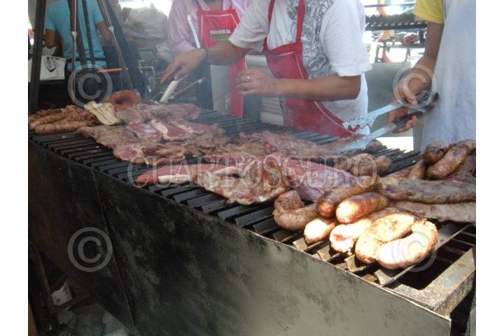MÉXICO, D.F., 30JULIO2010.- Variedad de carnes son preparadas, en el marco de la Séptima Feria de la Torta en la explanada de la Delegación Venustiano Carranza, en donde se logro romper el récord del año pasado en la misma feria, de la torta mas grande del mundo. La feria cuenta con mas de 45 stands en donde se instalaron torteros de distintas partes del pais. FOTO: DIEGO SIMÓN SÁNCHEZ/CUARTOSCURO.COM