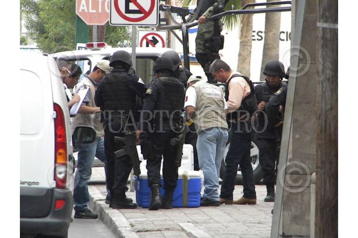 NUEVO LAREDO, TAMAULIPAS, 04MAYO2012.- Tres hieleras conteniendo 14 cabezas humanas fueron localizadas en horas de la mañana frente al edificio de la presidencia municipal en esta ciudad que se cree que pertenecían a las personas cuyos cuerpos fueron localizados desmembrados horas antes. El hecho provocó la movilización de fuerzas estatales y federales que acudieron de inmediato al lugar para dar inicio a las investigaciones en un acto que viene a sumar un total de 23 cadáveres localizados en un lapso de menos de doce horas lo cual provocó consternación en esta ciudad fronteriza. FOTO: JOAQUIN MURRIETA /CUARTOSCURO.COM