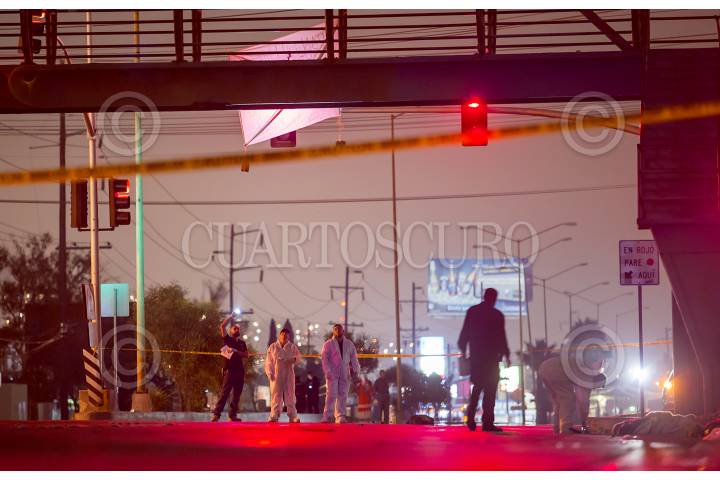 TIJUANA, BAJA CALIFORNIA, 03SEPTIEMBRE2016.- Cuatro cadáveres descuartizados fueron encontrados la madrugada del sábado en el bulevar Federico Benítez, a la altura del puente peatonal de la avenida de las Hojas, tres se encontraron a un costado de la vialidad y uno más fue colgado junto a una manta que tenía escrito un mensaje. Al lugar acudieron elementos del Ejército Mexicano y agentes de la Policía Ministerial, quieres realizaron las primeras investigaciones y levantamiento de los cuerpos. FOTO: CHRISTIAN SERNA /CUARTOSCURO.COM