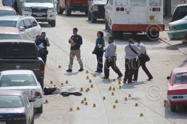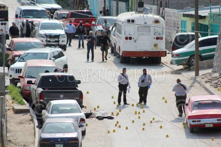 CIUDAD JUÁREZ, CHIHUAHUA, 06SEPTIEMBRE2017.- Un agente ministerial, escolta del primer comandante de la Fiscalía General del Estado (FGE), fue asesinado al salir de su vivienda, en la colonia Álvaro Obregón, por un comando armado que realizó decenas de disparos. El cuerpo del oficial quedó tendido junto a pick up Dodge Ram, color verde, propiedad de la FGE, en medio de múltiples casquillos de arma larga y corta percutidos, sobre la calle Isla Santa Elena. FOTO: NACHO RUIZ /CUARTOSCURO.COM
