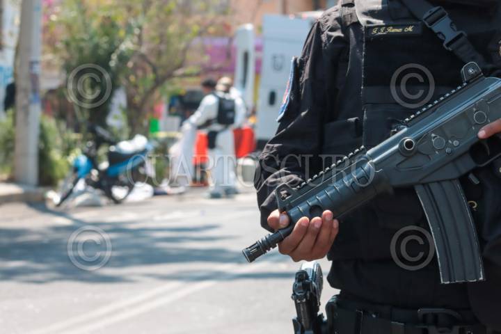 CIUDAD DE MÉXICO, 05MARZO2024.- Asesinan a balazos a un motociclista en la calle de Chichimecas, colonia Ajusco, en la alcaldía Coyoacán. Trabajadores de la fiscalía hicieron el levantamiento del cuerpo. FOTO: ROGELIO MORALES/CUARTOSCURO.COM