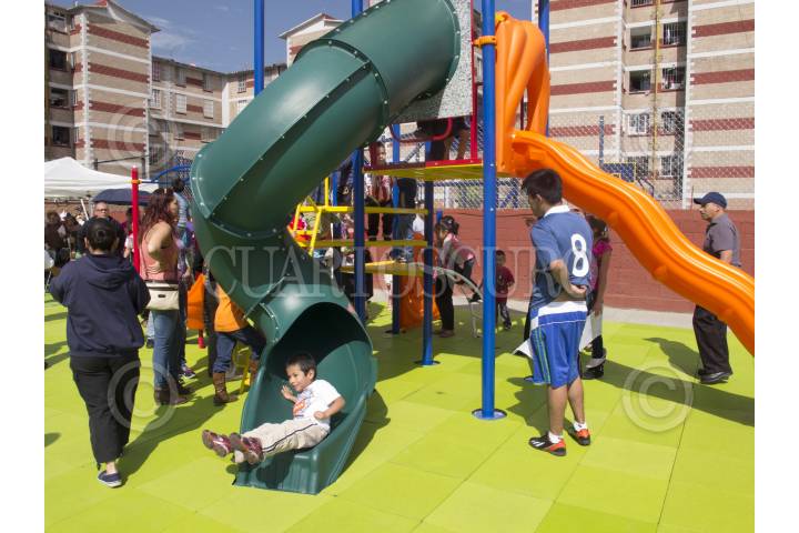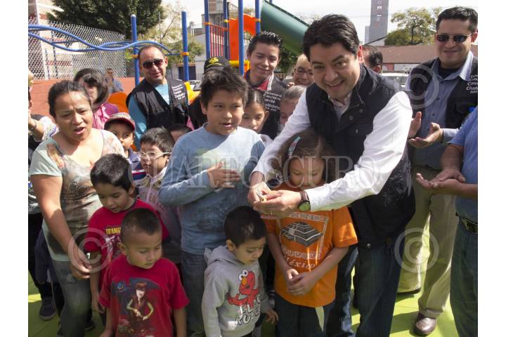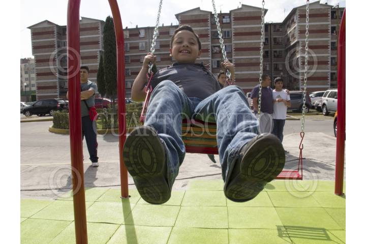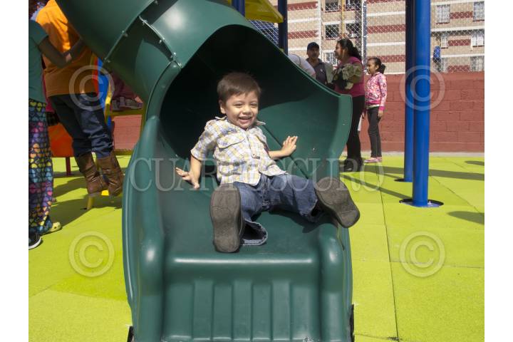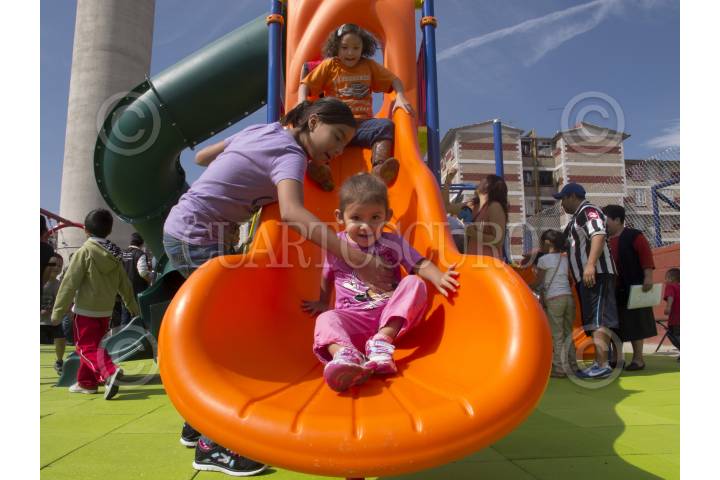 MÉXICO, D.F., 21DICIEMBRE2014.- Niños se divierten en los recién inaugurados juegos infantiles en la unidad Demet de la colonia Atlampa la ceremonia la encabezó el delegado de la Cuauhtémoc Alejandro Fernández. FOTO: MOISÉS PABLO /CUARTOSCURO.COM