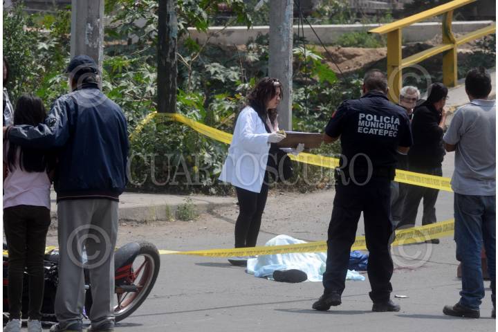 ECATEPEC, ESTADO DE MÉXICO, 16SEPTIEMBRE2019.- Un motociclista murió al derraparse en su moto entre avenidas Central y Gran Canal, colonia Benito Juárez, San Pedro Xalostoc. FOTO: ARMANDO MONROY /CUARTOSCURO.COM