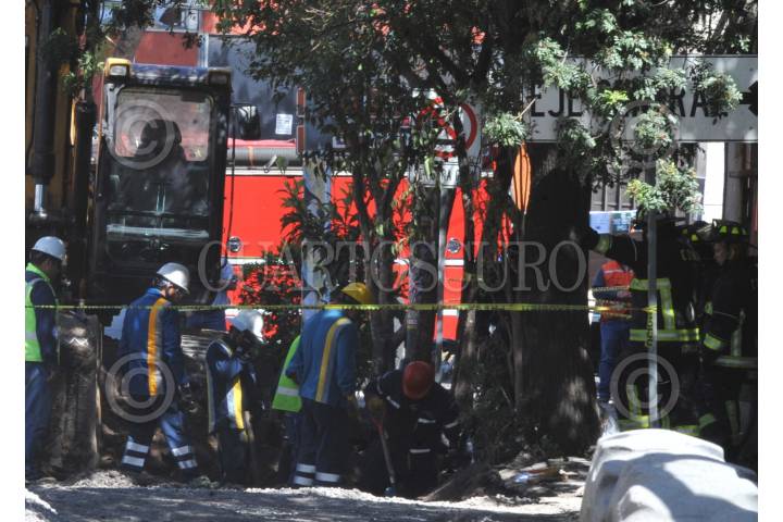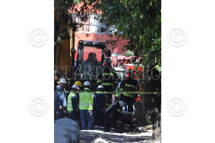 CIUDAD DE MÉXICO, 05NOVIEMBRE2018.- Un trascabo rompió una tubería de gas natural cuando trabajaba en la calle de Zaragoza, entre avenida Flores Magón y Mier y Pesado, en la colonia Buenavista. Personal de la empresa de gas natural y bomberos controlaron la fuga. FOTO: ARMANDO MONROY /CUARTOSCURO.COM