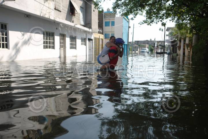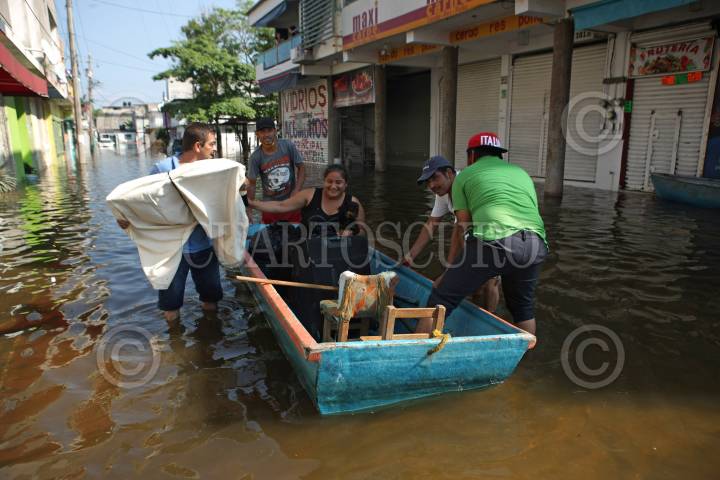 Habitantes de la colonia Gaviotas Sur intentan hacer su vida cotidiana a pesar de que sus hogares están inundados por la creciente de la laguna El Camarón y el Río Carrizal.