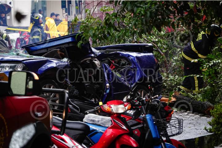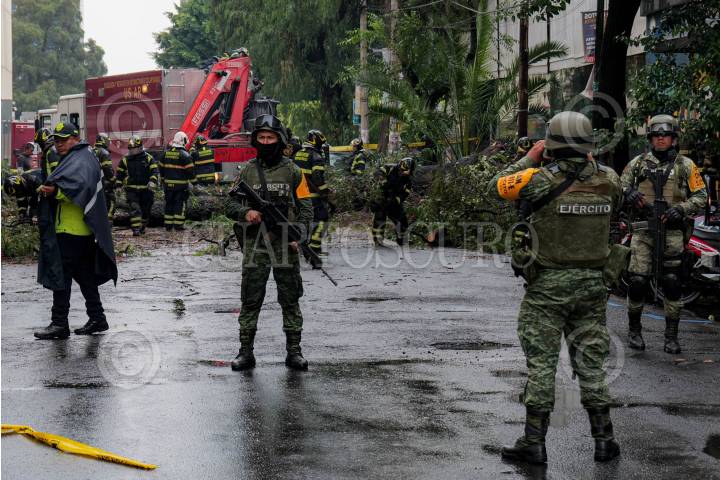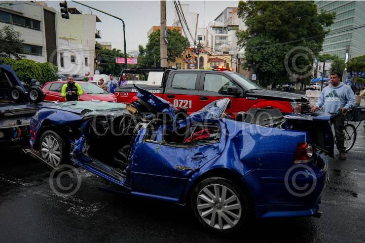CIUDAD DE MÉXICO, 19JULIO2024.- Una mujer perdió la vida, mientras un hombre y un menor fueron rescatados luego de que debido a la lluvias y al reblandecimiento de la tierra un árbol cayera sobre un carro sobre la calle Filadelfia de la colonia Nápoles, en la alcaldía Benito Juárez. Equipos de emergencia arribaron al lugar para realizar las maniobras de rescate y recuperación del cuerpo. FOTOS: ALICE MORITZ /ROGELIO MORALES /CUARTOSCURO.COM