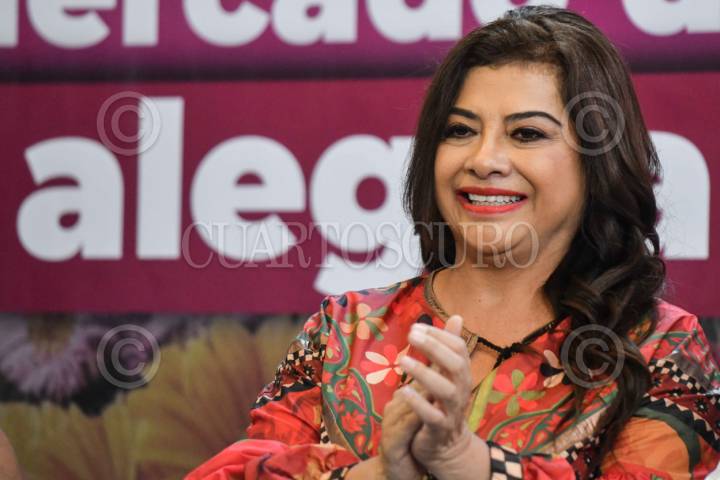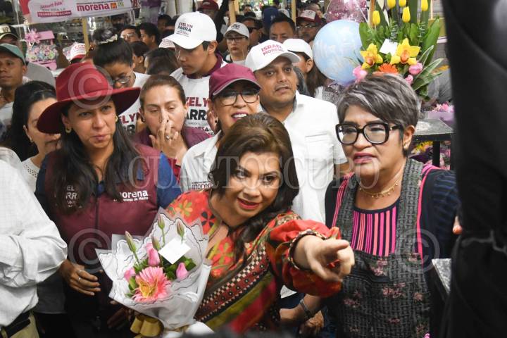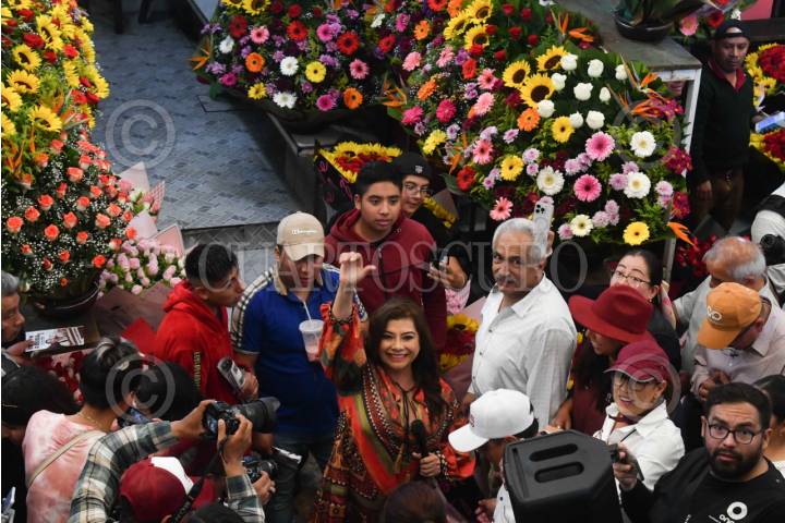 CIUDAD DE MÉXICO, 19ABRIL2024.- Clara Brugada, candidata a la Jefatura de Gobierno por la coalición Sigamos Haciendo Historia, encabezó una asamblea informativa en las inmediaciones de la Central de Abastos para compartir con comerciantes sus propuestas de gobierno. FOTO: MARIO JASSO/CUARTOSCURO.COM