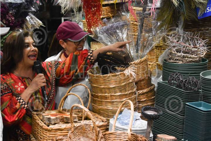 CIUDAD DE MÉXICO, 13ABRIL2024.- Clara Brugada, candidata a la Jefatura de Gobierno por la coalición Sigamos Haciendo Historia, encabezó un recorrido en el mercado de Jamaica para compartir sus propuestas de campaña con locatarios del lugar. FOTO: MARIO JASSO/CUARTOSCURO.COM