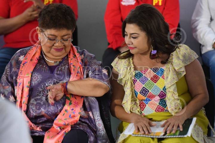 CIUDAD DE MÉXICO, 19ABRIL2024.- Ernestina Godoy, candidata al senado de la República, y Clara Brugada, candidata a la Jefatura de Gobierno por la coalición Sigamos Haciendo Historia, durante la asamblea informativa en las inmediaciones de la Central de Abastos en donde compartieron sus propuestas de gobierno. FOTO: MARIO JASSO/CUARTOSCURO.COM