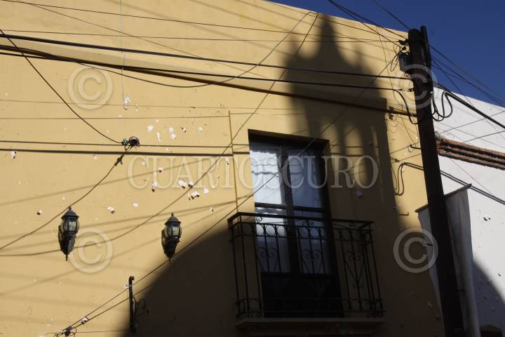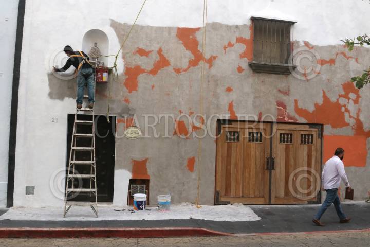 Un trabajador pinta la fachada de una casa antigua en la calle Nezahualcóyotl en el centro de la ciudad.