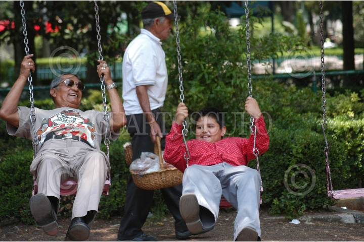 MÉXICO D.F. 17JUNIO2007.-Un abuelo juega con su nieto en los columpios, esto durante el día del padre. FOTO: GUILLERMO PEREA/CUARTOSCURO.COM