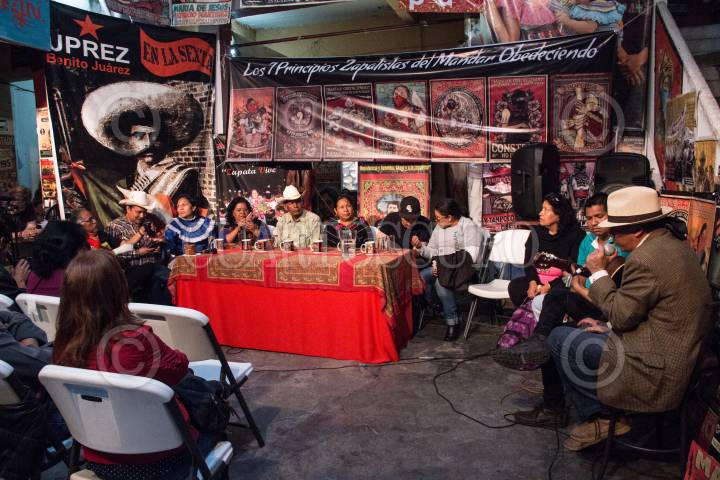 CIUDAD DE MÉXICO, 28SEPTIEMBRE2018.- María de Jesús Patricio Ramírez, Vocera del Concejo Indígena de Gobierno ofreció conferencia de prensa en el café Zapata Vive, para presentar los carteles ilustración sobre los 7 principios zapatistas, los cuales se pusieron a la venta en los cafés Zapatistas del país para recaudar fondos para las comunidades indígenas. FOTO: ANDREA MURCIA /CUARTOSCURO.COM