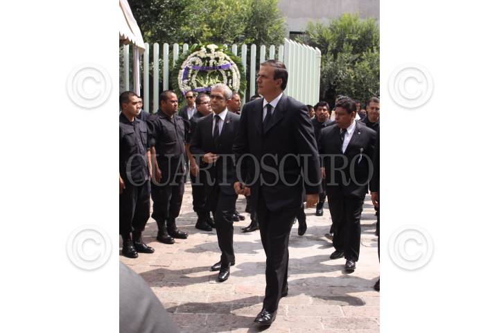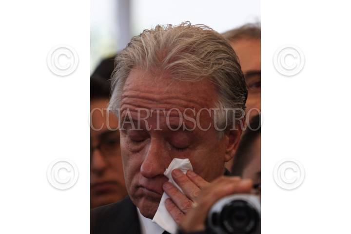MÉXICO, D.F., 04JULIO2009.- Alejandro Martí, durante el homenaje a los comandantes G.E.R.I., Carlos Julio Rincón Juárez y José Antonio Moreno Sánchez, quienes cayeron abatidos ayer durante el operativo en el que intentaba rescatar a un mujer que estaba secuestrada, esto en la instalaciones de la procuraduría. FOTO: MOISÉS PABLO/ CUARTOSCURO.COM