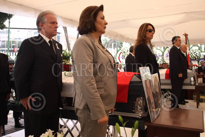 MÉXICO, D.F., 04JULIO2009.- Los ciudadanos Isabel Miranda de Wallace, Alejandro Martí, María Elenea Morera y Ana Franco Wattnem, presidenta de México Unido Contra la Delincuencia, montaron un guardia de honor en el feretro del comandante Carlos Julio Rincón Juárez , uno de los agentes que cayeron abatidos durante un operativo para rescatar a una secuestrada, esto durante el homenaje que les organizó la procuraduría. FOTO: MOISÉS PABLO/ CUARTOSCURO.COM