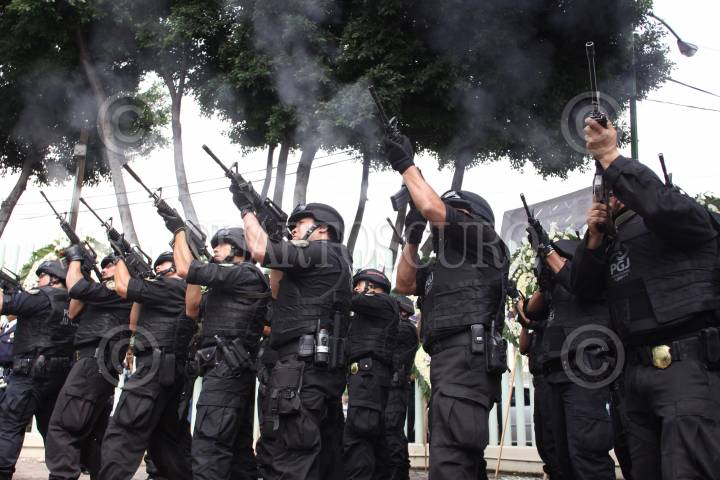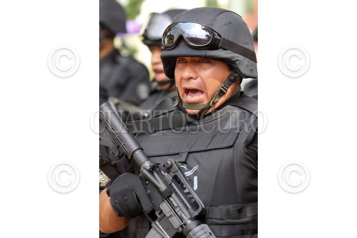 MÉXICO, D.F., 04JULIO2009.- Elementos del Grupo Especial de Reacción Inmediata, brindaron un homenaje a sus compañeros los comandantes Carlos Julio Rincón Juárez y José Antonio Moreno Sánchez, quienes murieron ayer durante un operativo en el que se intentaba rescatar a un mujer secuestrada, esto en instalaciones de la procuraduría. FOTO: MOISÉS PABLO/ CUARTOSCURO.COM
