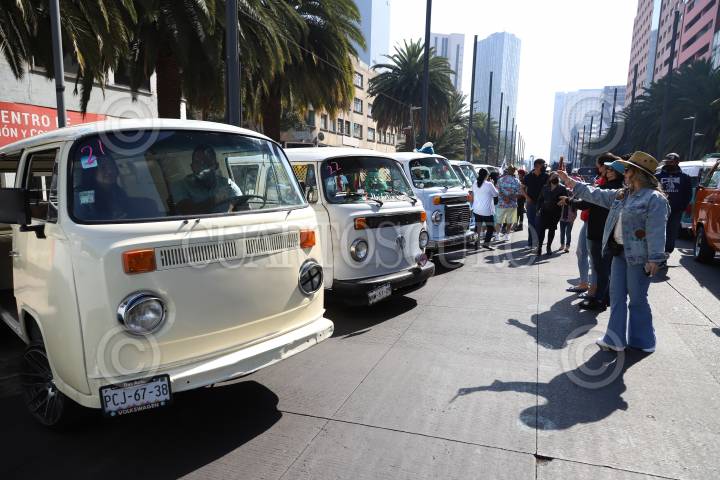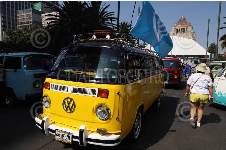 Familia enteras pudieron disfrutar de una exhibición de automóviles tipo Combi en el Monumento a la Revolución como parte del Día Mundial de la Combi.