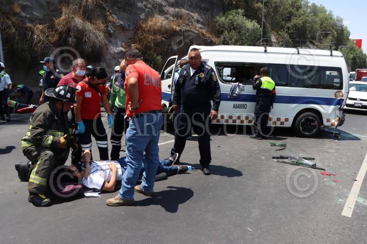 Una combi del transporte público volcó cuando se dirigía al paradero de Indios Verdes, con saldo de once pasajeros heridos.