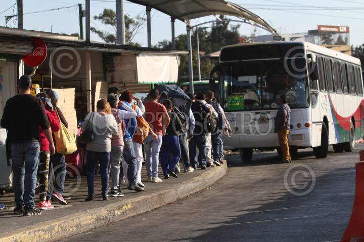 Al menos una docena de personas esperan su abordaje a un camión en el paradero de Indios Verdes.